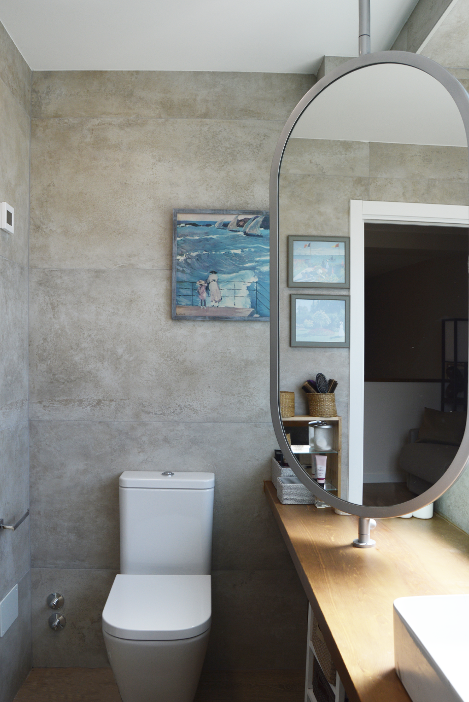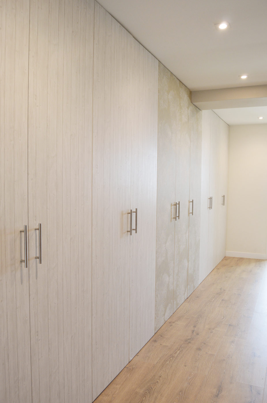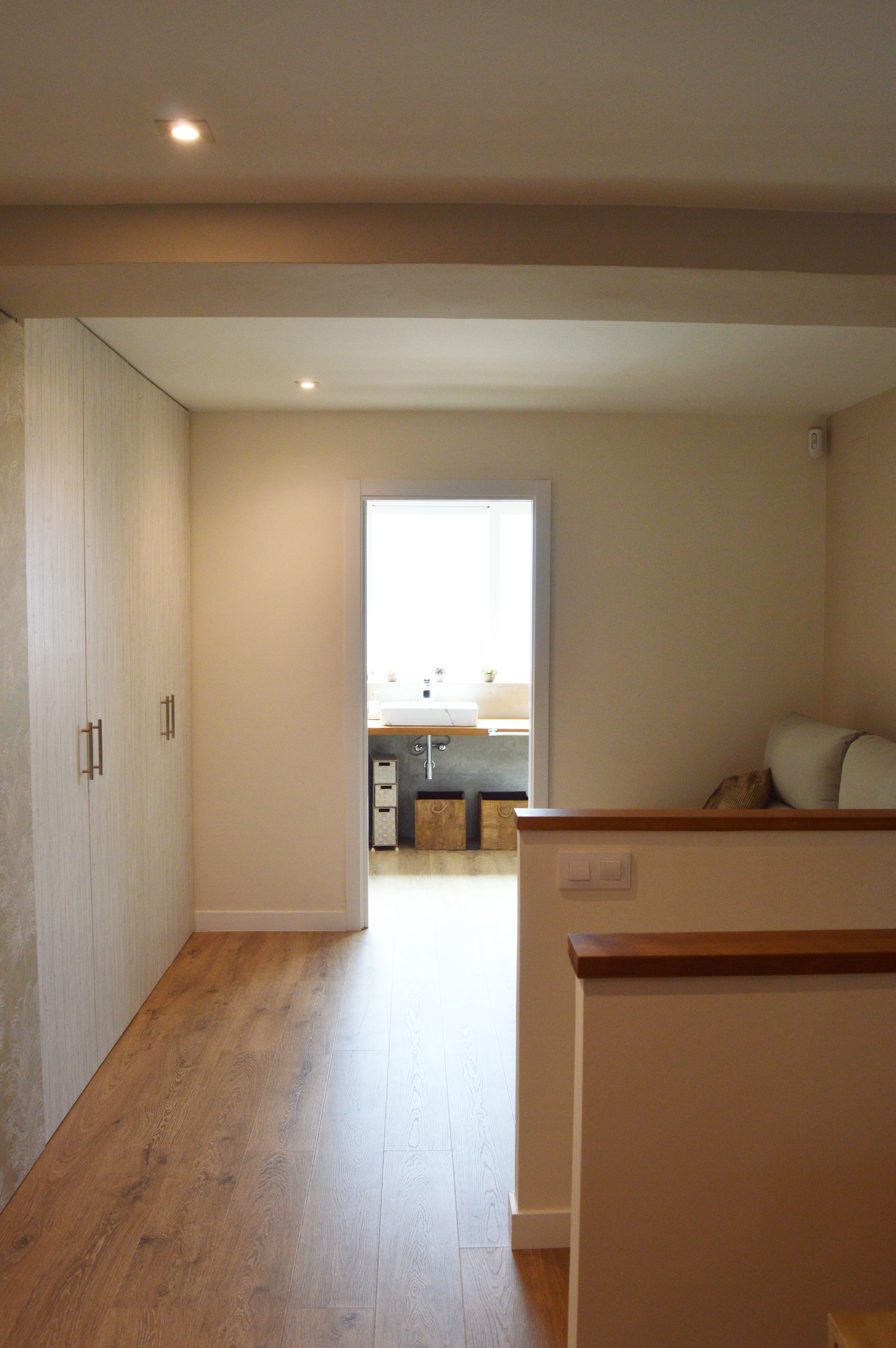 Destaca la creación de un pequeño aseo aprovechando el hueco de las escaleras, así como del revestimiento de varios armarios.