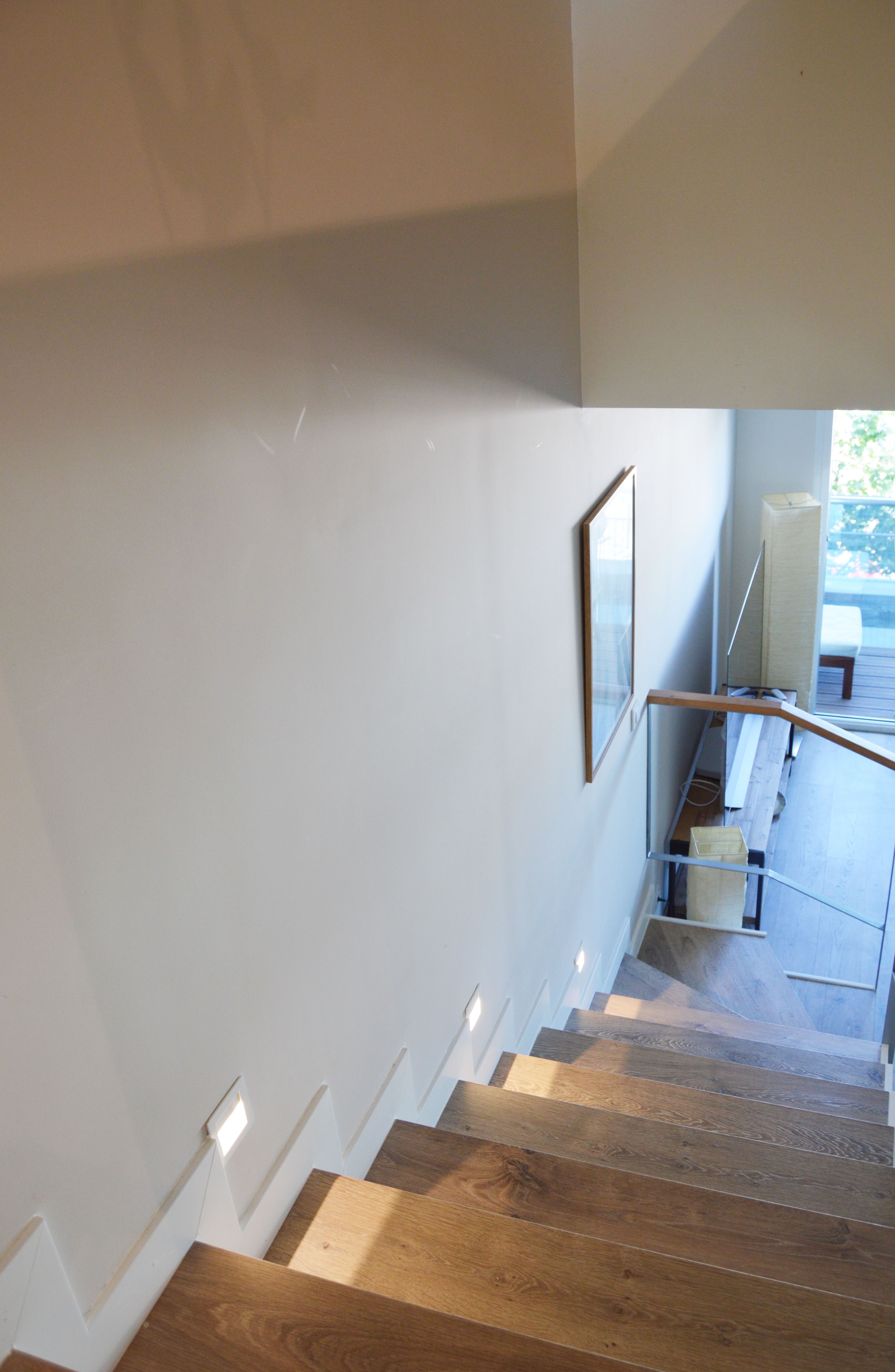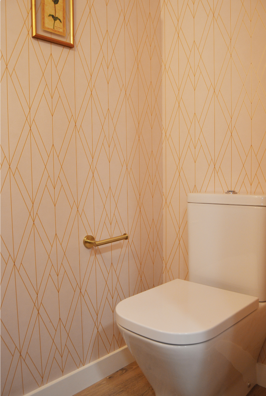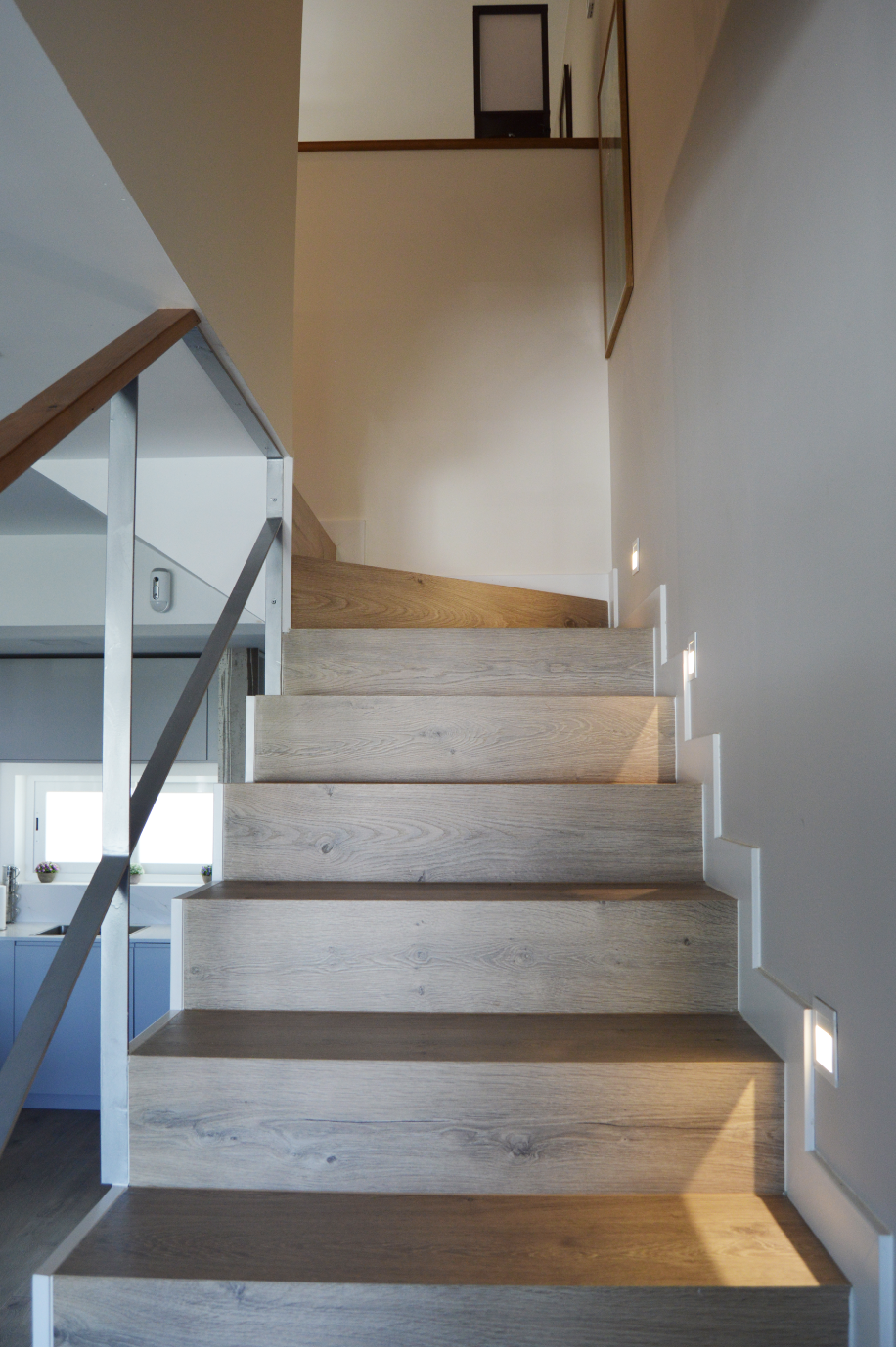 Destaca la creación de un pequeño aseo aprovechando el hueco de las escaleras, así como del revestimiento de varios armarios.